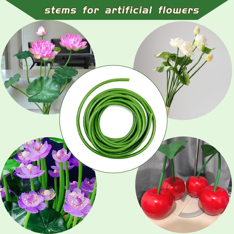 - The artificial flower stem cover has an external diameter of 4.5 mm/0.17inch, an internal diameter of 3.7mm/0.14inch, and a length of 500 cm/192inch per roll.You will receive 2 rolls of green tubing.