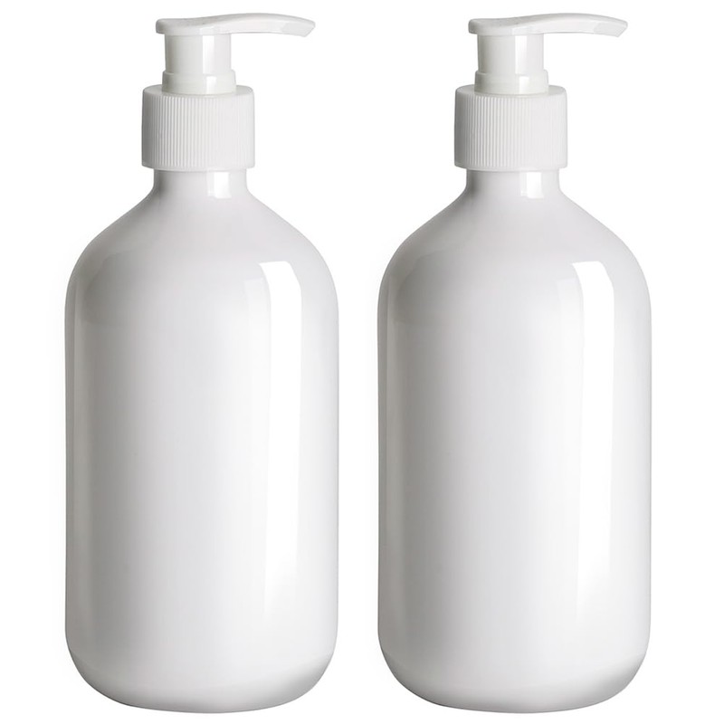2Pcs 16.9oz 500ml White Plastic Pump Bottle Dispenser, Refillable Empty Bottle Container with Pump for Essential Oil Soap Lotion Shampoo