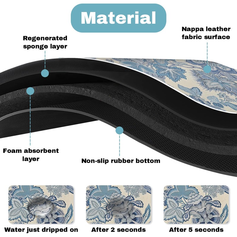 - Super Absorbent Material: This dish Mat is made of highly absorbent diatomaceous earth, designed to quickly soak up water and stop splashes, keeping your countertop dry and clean. The 0.2-inch thick non-slip backing not only keeps the mat in place but also helps absorb vibrations between your coffee machine and the counter—effectively reducing noise.