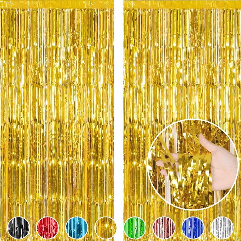 - Package Include: Metallic Silk Foil Tassel Curtains (3.2 x 6..3 ft/ 1 x 2m) x 2 pcs, our metallic silk curtains are long and can better decorate your party.
