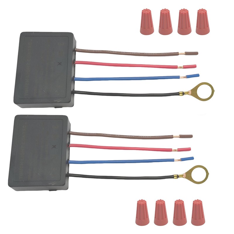- Package Includes: 2pcs 3 way touch sensor dimmer, 4pcs wire caps.This lamp dimmer features compact dimensions of 1.88x1.37x0.55 inches and includes a convenient 5.1 inch wire length