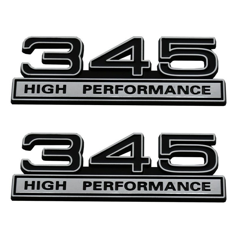 2pcs 345 5.7 Liter High Performance Engine Emblems Badge 3D Decals Stickers Cars Trucks (Chrome Black)