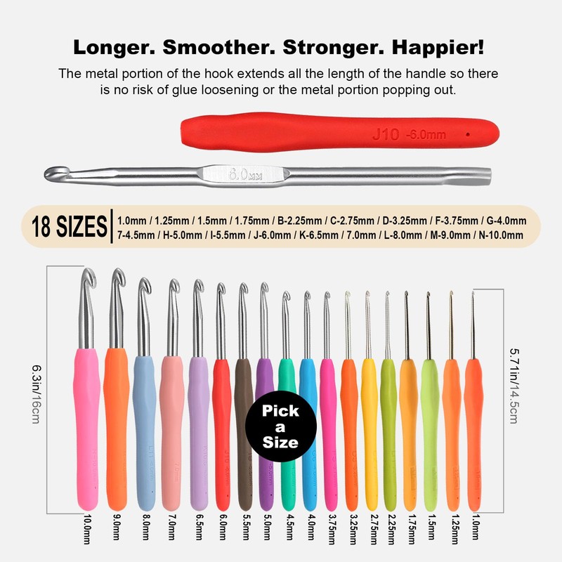 - Well-grip and No Pain: The extra-long ergonomic silicone rubber handle gives your hand a comfortable grip, making your crocheting easier, faster, and happier