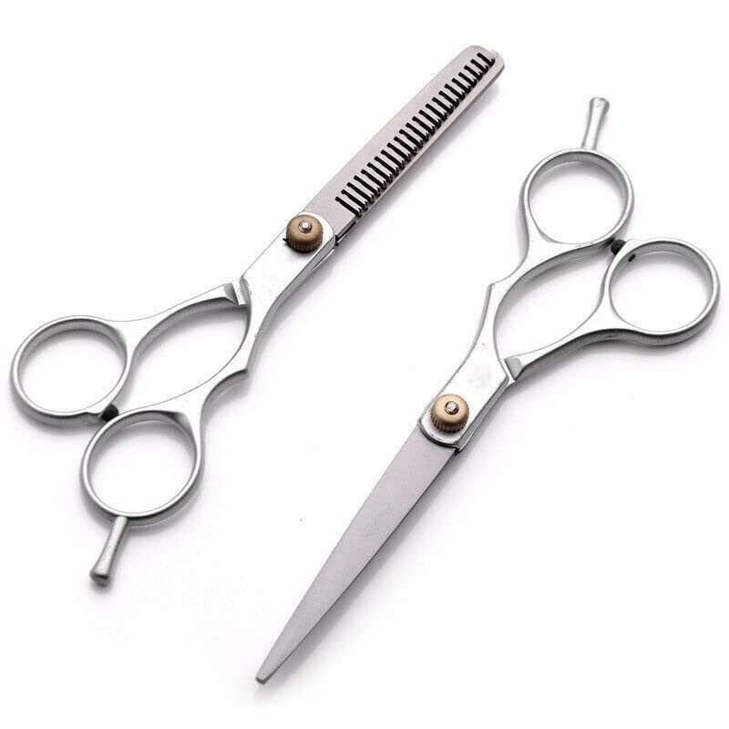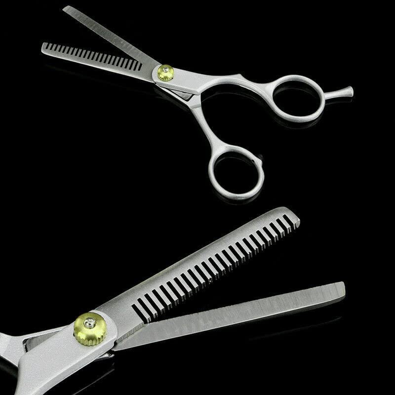 - ✂️ Complete Styling Set: This package offers a pair of regular cutting scissors and thinning scissors, catering to a variety of hair styling needs, be it trimming or texturizing.