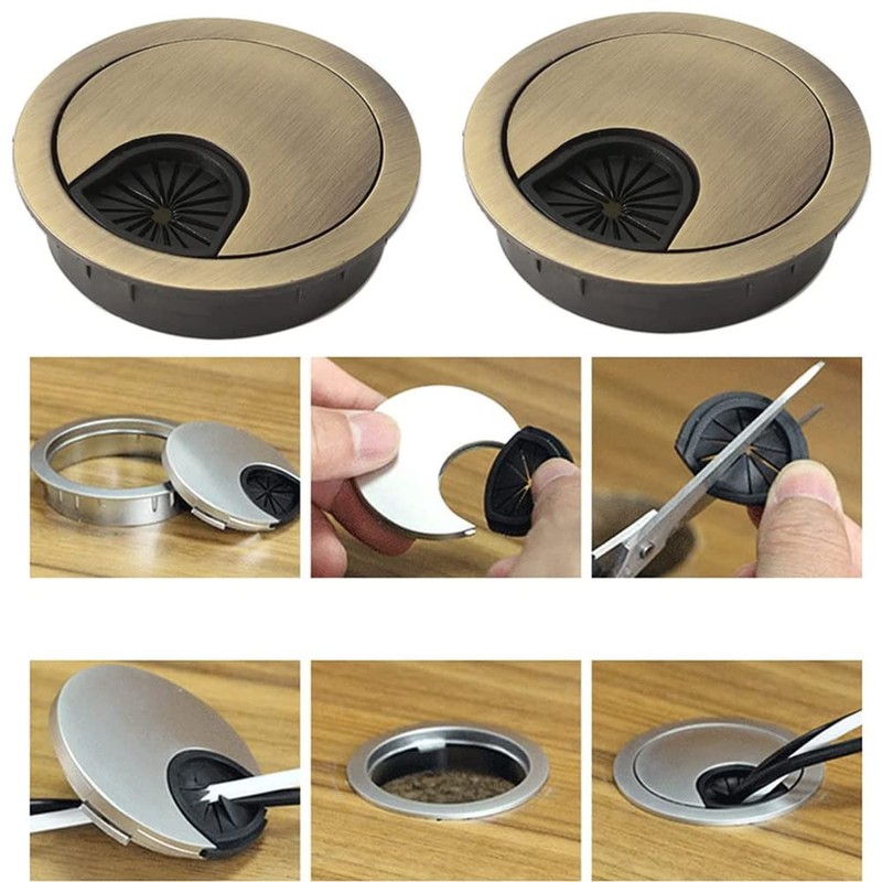 2Pcs 60mm Desk Cable Grommets,Computer Desk Metal Cable Hole,Round Cable Hole...