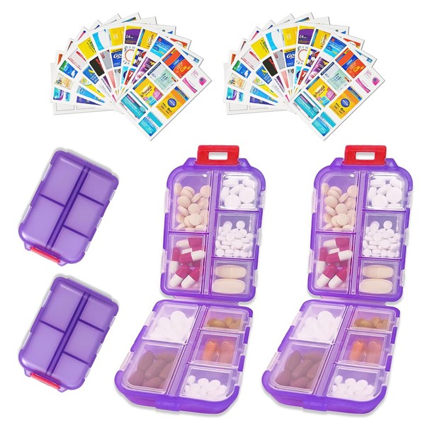 2PCS 7-Day Pill Organizer with Labels – Travel Pill Case, Daily Medication Organizer | Compact & Secure | Fits in Pocket/Purse (3.7” x 2.4”)
