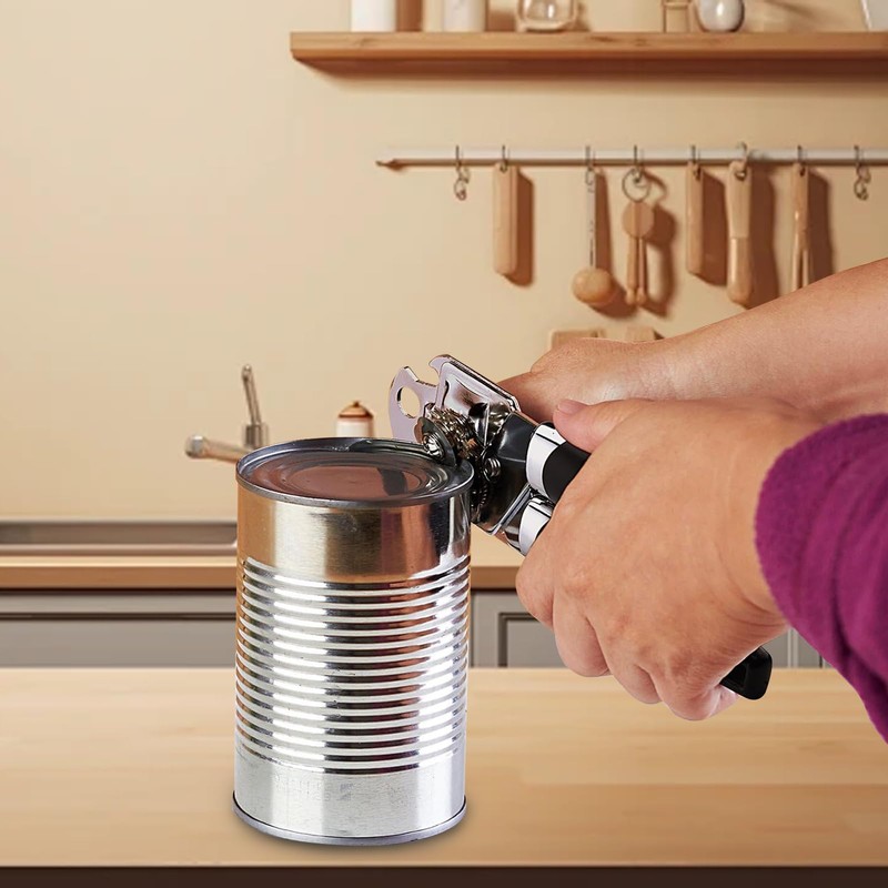- 【QUALITY MATERIAL】Nuestro abrelatas está hecho de acero inoxidable 3Cr13 de alta calidad, que es resistente y duradero, no es fácil de doblar o romper. Controle estrictamente la calidad del producto, el abrelatas no liberará productos químicos nocivos durante el uso, para que pueda disfrutar de su comida con tranquilidad.