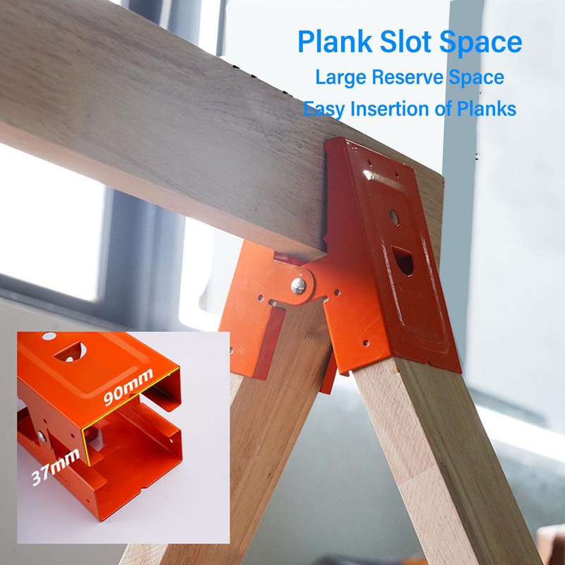 • Excellent Cold Rolled Steel Material: This saw horse bracket is made of excellent cold rolled steel material, which is strong and abrasion resistant, and can ensure a sturdy structure that can withstand a lot of use.