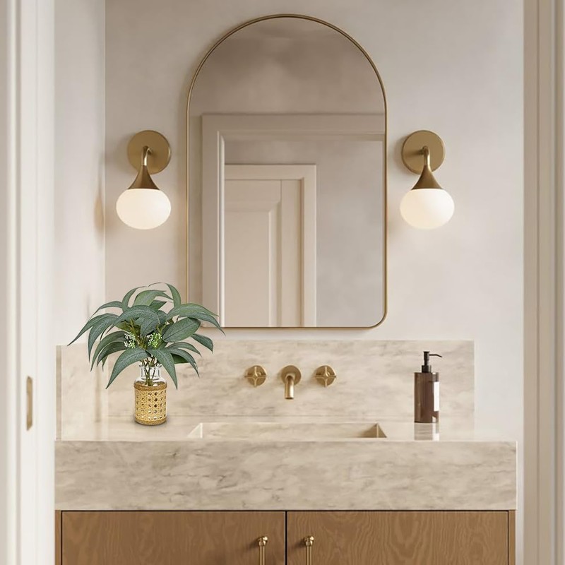 • Versatile Size & Use: You’ll receive two artificial plant stems arrangement in a 11-inch tall arrangement (glass vase: 4.9" height x 2.7" width). Perfect for tables, shelves, or countertops, this compact yet impactful design suits living rooms, kitchens, offices, or bathrooms.