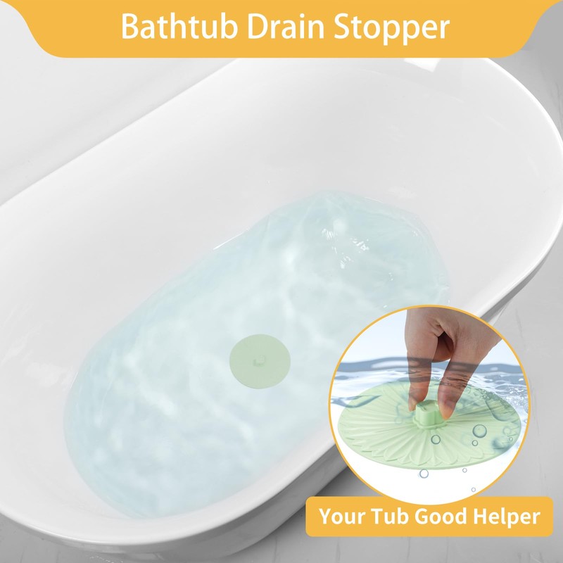 2PCS Bathtub Drain Stopper, 5'' Tub Stopper Bathtub Stopper Universal Drain Cover Bathtub Drain Cover Bathtub Plug, Silicone Flat Suction Drain Stopper for Bathroom&Kitchen (White and Green 2PACK)