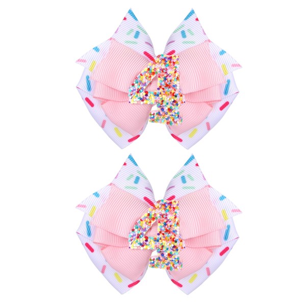 2Pcs Birthday Hair Bow for Baby Girls 1 2 3 4 5 6 Years, Pink Confetti Ice Cream Party Decorations, Sparkling Bows Hair Accessories for 4th Birthday