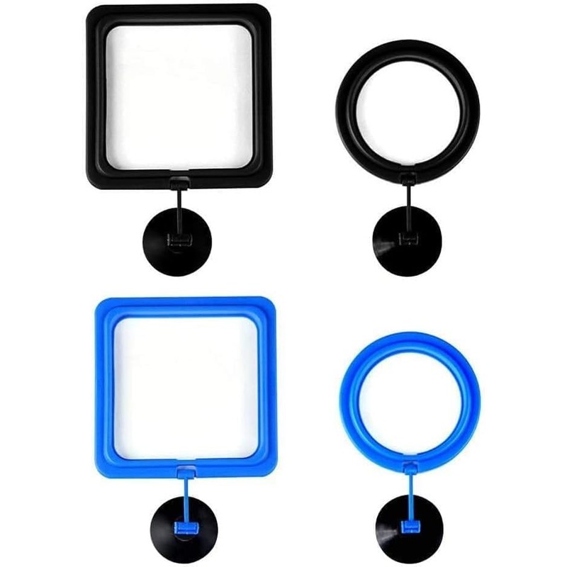 2pcs Black Fish Feeding Ring, Black Round and Square Aquarium Floating Food Feeder, Food Feeders with Suction Cup for Goldfish Turtle and Other Smaller Fish, Food Feeding Ring with Suction Cup