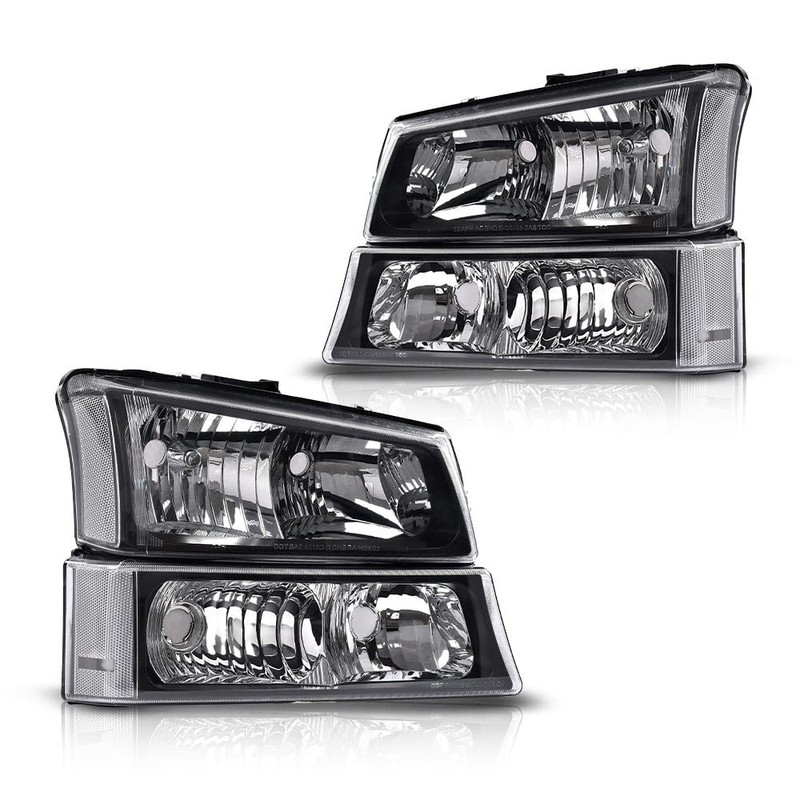 2Pcs Black Housing Clear Lens Clear Corner Headlight Assembly kit Bumper Lamp Headlamp Replacement for Chevy Avalanche 2003-2006/Chevy Silverado 2003-2006 Pick Up1500 2500 3500 1500HD 2500HD