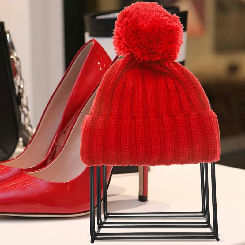 2Pcs Black Metal Hat Display Stand for Woolen, Beanies, Baseball Caps, and Berets - Space-Saving Hat Organizer Rack with Anti-Deformation Design for Closet or Counter