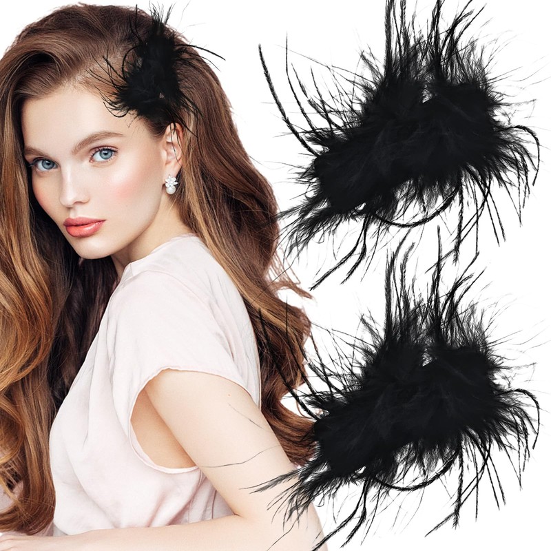 2PCS Black Ostrich Hair Clip, Ostrich Hair Feathers Clips, Artificial Swan Ostrich Ballet Style Hair Pins for Women for Christmas, Prom, Wedding