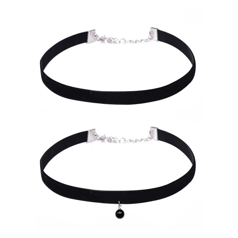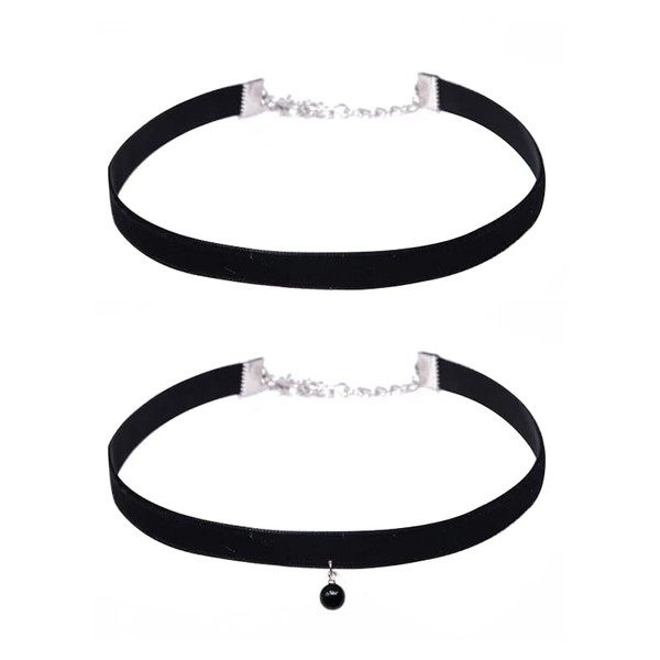 2pcs Black Velvet Choker Gothic Black Singal Pearl Choker for Women Girls (2pcs)