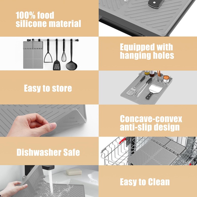 - MULTI-FUNCTION UPGRADE DESIGN: Our upgraded griddle silicone mat adopts an unspeakable design, which can withstand the test of time to ensure long service life. It is large enough to provide sufficient space to store your tableware, and 8 slots separate them when multi -tasking processing. The design of non -slip silicone material and irregular bumps and anti -sliding texture can prevent moving or sliding during use. The raised edge can prevent water or soup from overflowing and keep the barbecue desktop clean.