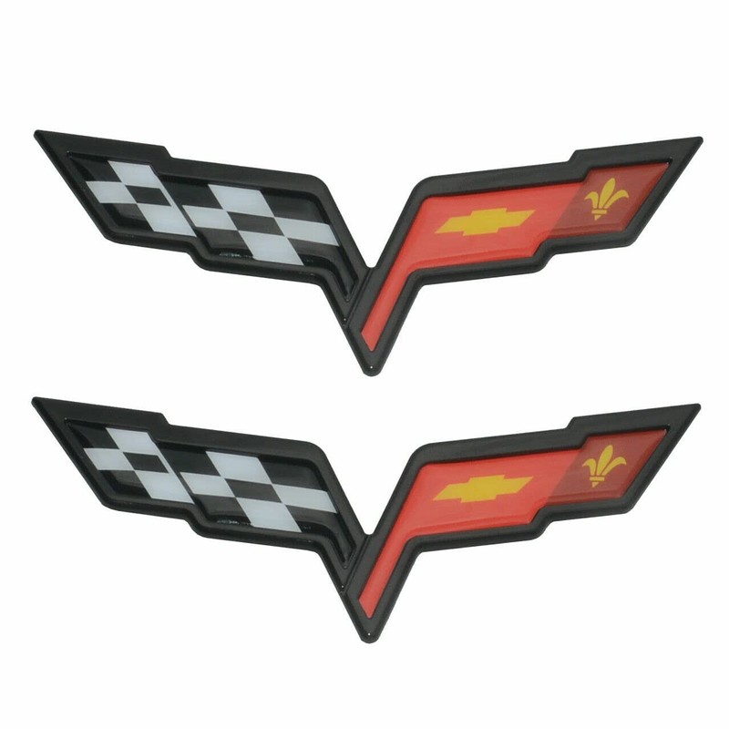 2Pcs C6 Corvette Emblem 2005-2013 Front Hood Rear Crossed Flags Badge Sticker Replacement for Corvette Black Red