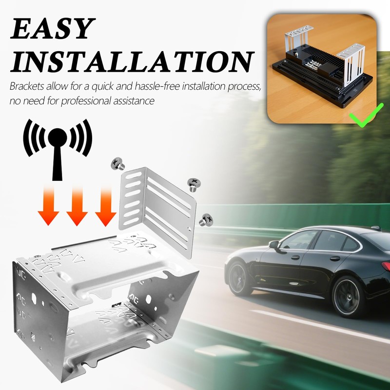 - Included Screws Installation: No more complicated steps, just take out our car mounting bracket, select the car audio device you need to fix, use the screws included in the kit to align the holes and use the tool to tighten the fixing