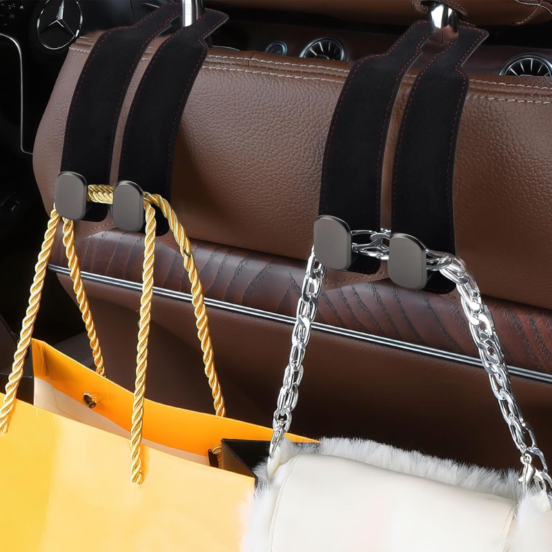 - Maximize Your Space: Our car hooks have a double hook design that can hang more items and save more space than traditional single hooks. Use them to organize your car seats and create more space, while also keeping your items easily accessible. The hooks can even double as cell phone holders, allowing you to keep your hands free while driving.