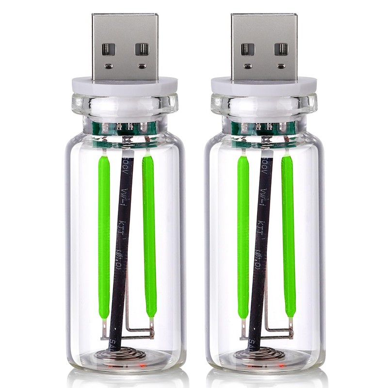 2PCS Car USB Night Light Touch Dimmable LED Filament Lamp, USB Plug-in Mini Glass Bottle Night Light DIY Mood Lamp Atmosphere Lights for Automotive Vehicle Bedroom Hallway Camping Decoration, Green
