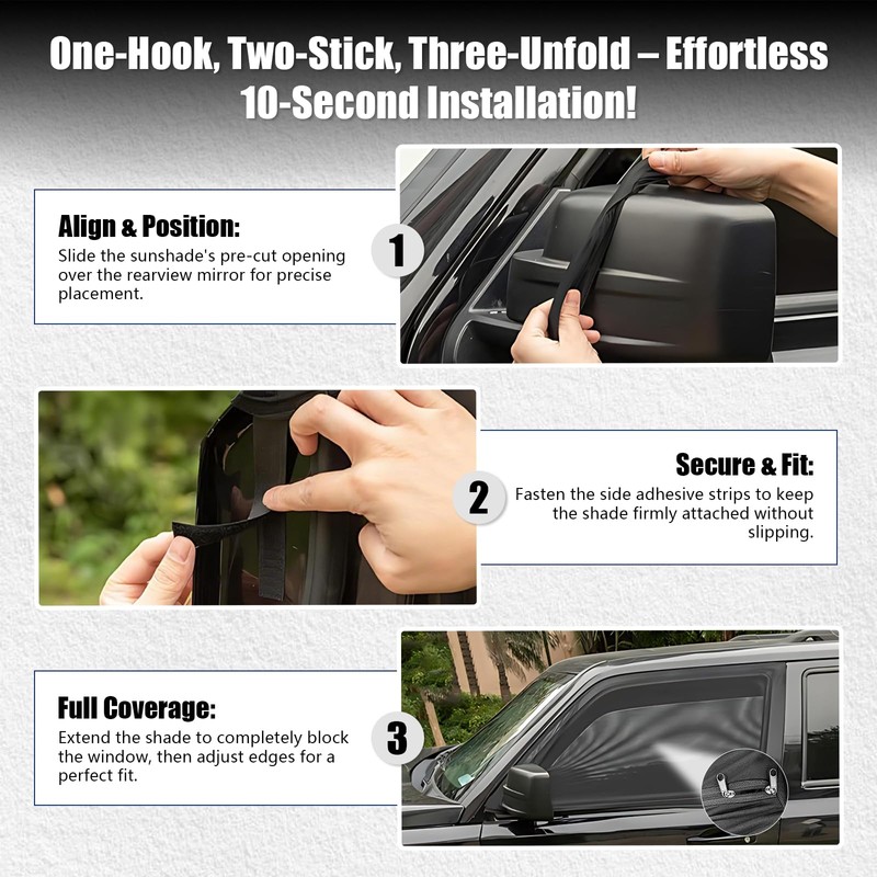 - 【Easy installation and removal in seconds】No tools required! Simply pull the window cover over your SUV window and secure with Velcro. Fits most models (please measure your window first).