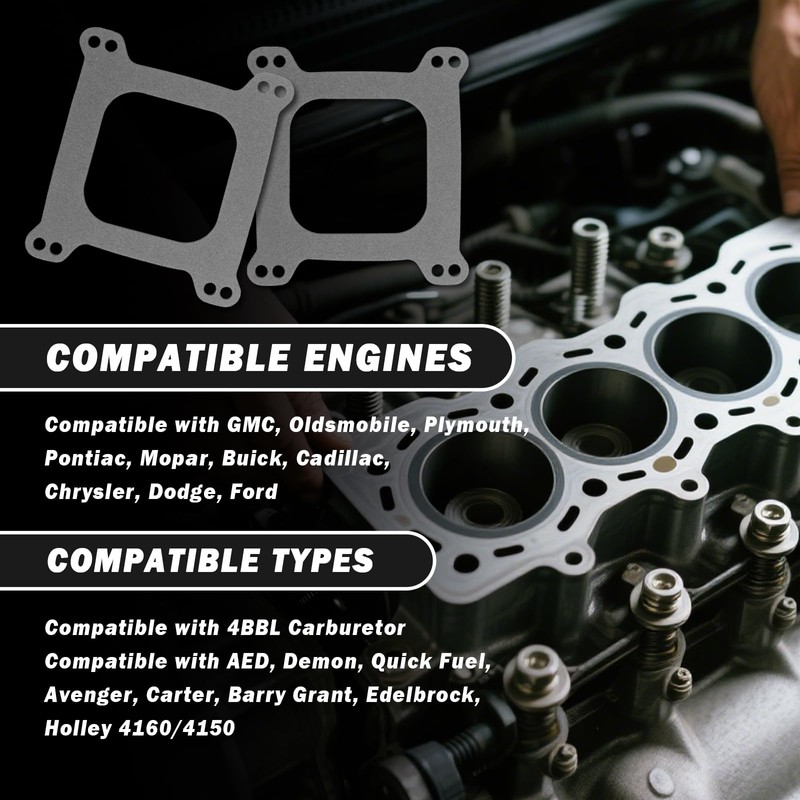 - Compatible Models: Our carburetor gasket for engines compatible with GMC, Oldsmobile, Plymouth, Pontiac, Mopar, Buick, Cadillac, Chrysler, Dodge, Ford, for rectangular interface compatible with AED, Demon, Edelbrock, Holley 4160/4150, etc, please check models before purchase