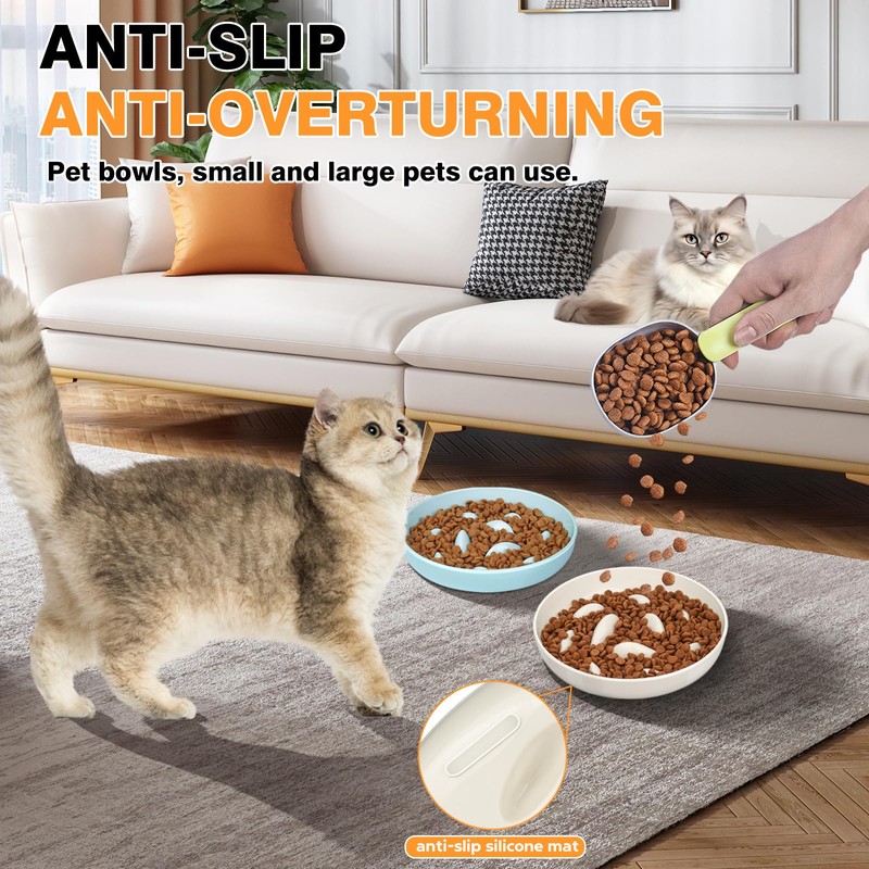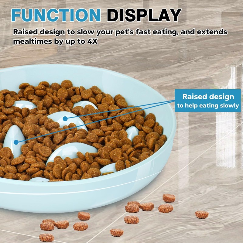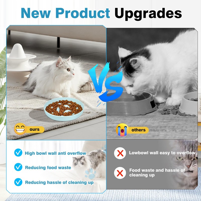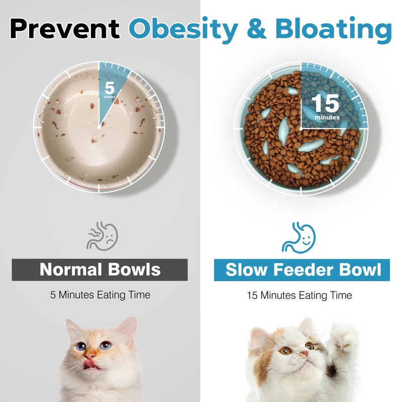 - Healthy Diet for Pets: Cat slow feeder has a fluted design that extends the eating time, helping to slow down your cat's eating speed and avoiding health problems such as bloating, vomiting, indigestion and obesity caused by eating too fast. Helps your cute furry friend develop healthy eating habits