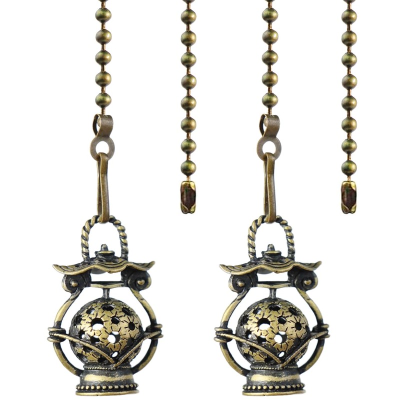 2Pcs Ceiling Fan Pull Chain Set, 12Inch Metal Oil Lamp Fan Pull Chain Extender with Ball Chain Connector, Pull Chains for Ceiling Fans and Lights, Decorative Fan Pull Chain Pendant Extension (Bronze)