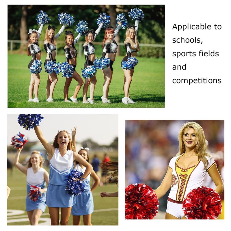 - Fluffy design: the cheerleading pompoms with portable handle are designed in bright metallic colors, bling enough to make youth cheers more dynamic and attractive, easy to catch much attention.
