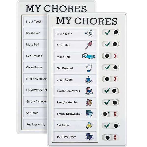 2Pcs Chore Chart Board for Family Kids Portable Memo Plastic Boards Sliding Routine Chart Detachable Message Daily Checklist Planner,Kids Adults Check Items