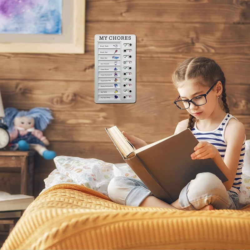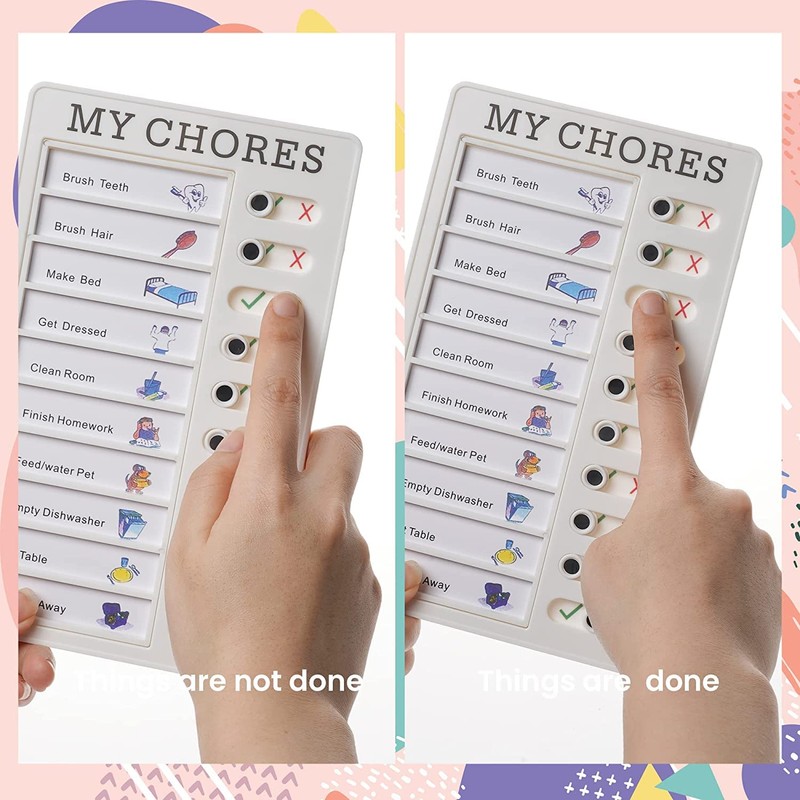 Chore board it is a great self-discipline tool to improve your own efficiency. Checklist board which is very easy to carry. It can be used to list things that need to be done in a day and remind yourself at any time.