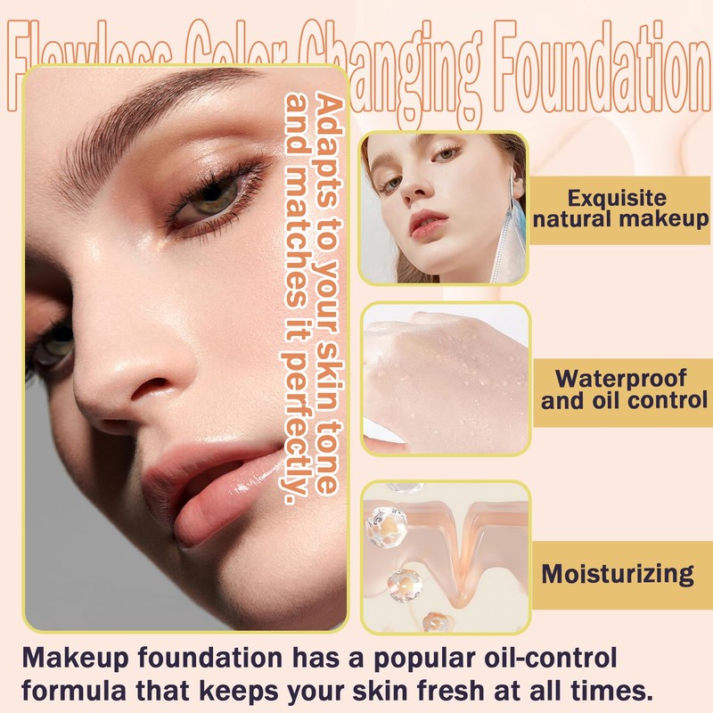 - 💕【Flawless Color Changing Foundation】Color changing foundation's unique color-matching formula adapts to your skin tone and matches it perfectly,giving you a more flattering and naturally refined look.