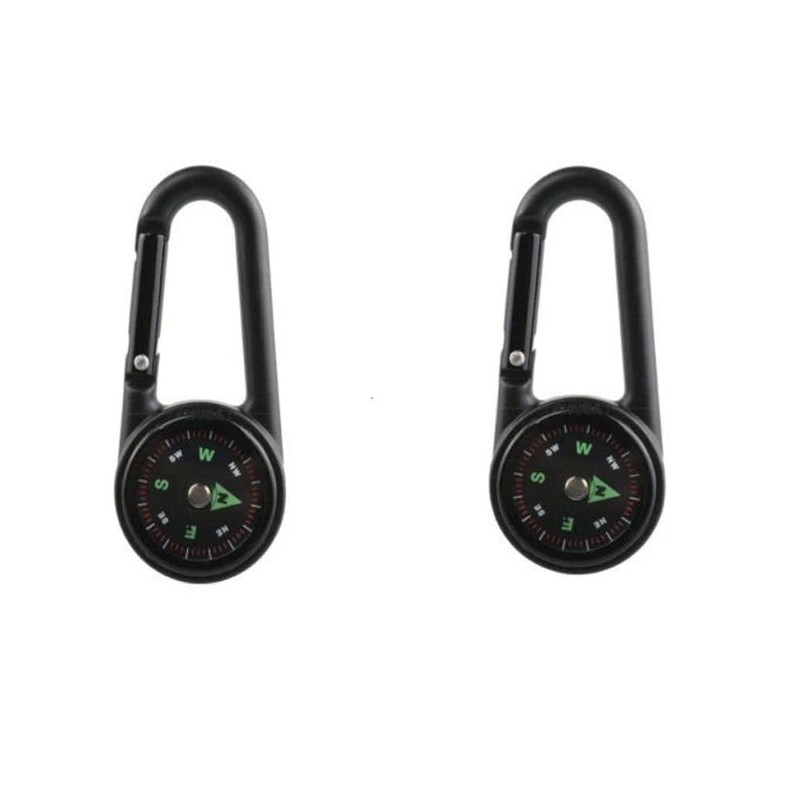 2PCS Compass Thermometer Carabiner 3 in 1 Outdoor Hiking Survival Key Ring Double Sided Metal Compasses Camping