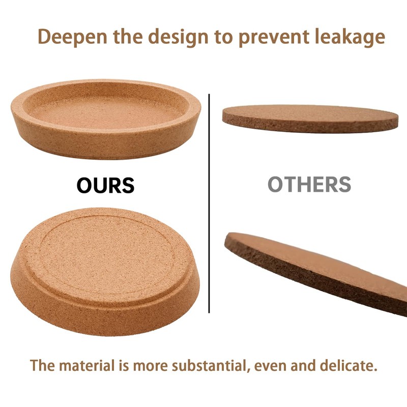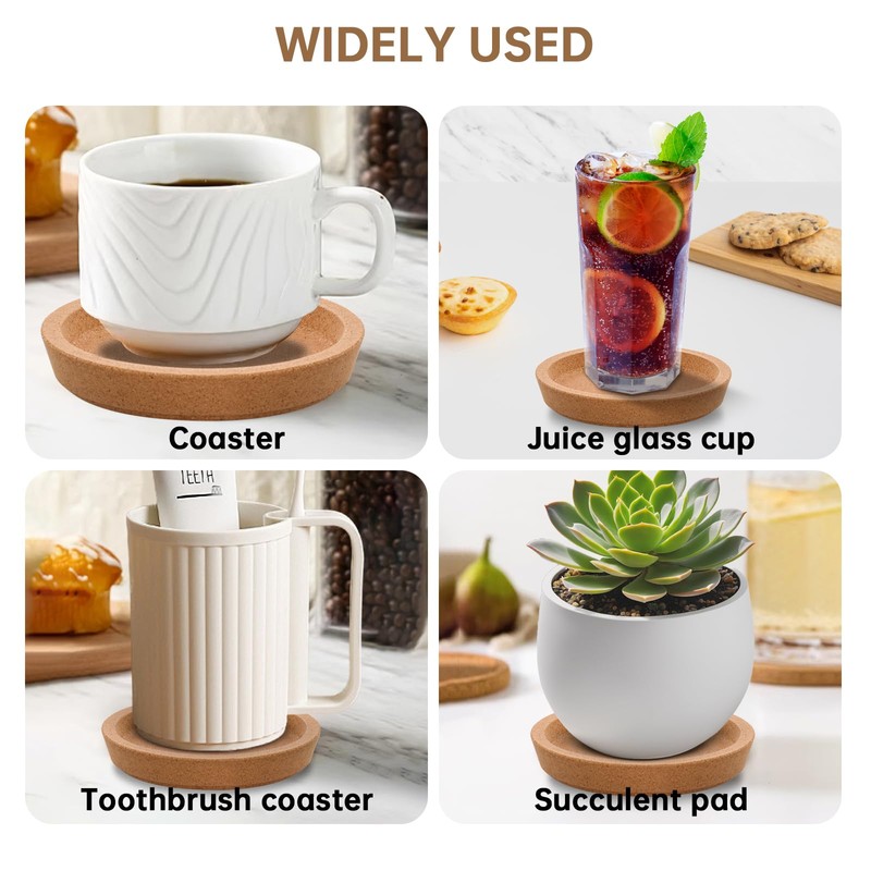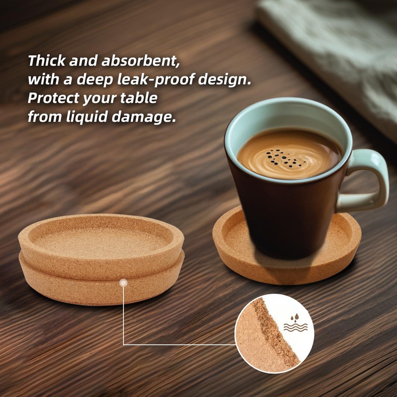 0.4 inches extra thick cork coaster, made of natural wood, environmental friendly, reusable cork coasters are not easy to damage. It is a good for home, office and bar use.