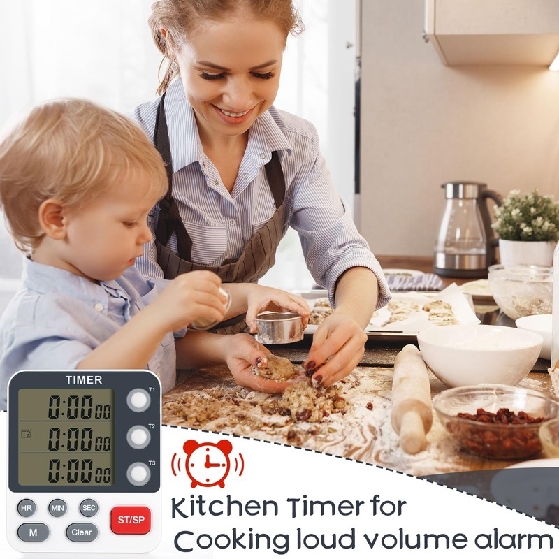 - Kitchen timer digital: This multi timer can inddependently run three timers,perfectly meeting your needs for timing multipe dishes ,countdown stopwatch timer for cooking the timing time can reach 99 hours, 59 minutes, and 59 seconds,suitable for various purposes such as cooking, exercise, laboratory, controlling game time, children's activities, and meetings