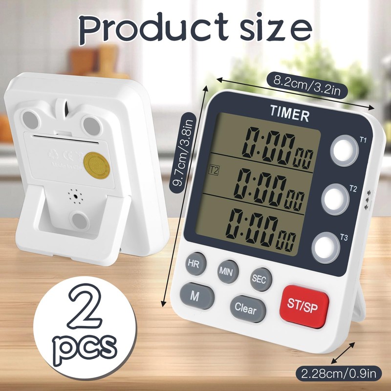 2Pcs Digital Kitchen Timer with Magnetic Back - Triple Alarm Cooking Timer for Kitchen & Classroom Use