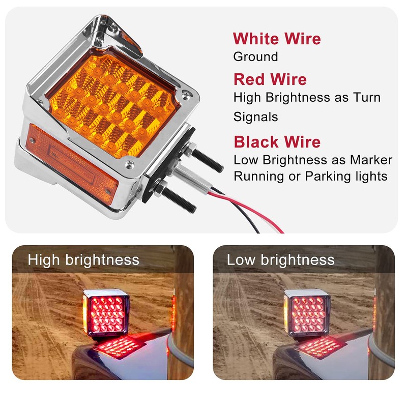 - This listing features for 2Pcs Square 39 LED double face led turn signal lights Amber/Red w/ Chrome Visors(both driver and passenger side). 36 Total LED's and 3 Amber Side Marker LED's each and these double-faced square pedestal turn signal lights are a popular choice for drivers on many truck fenders;