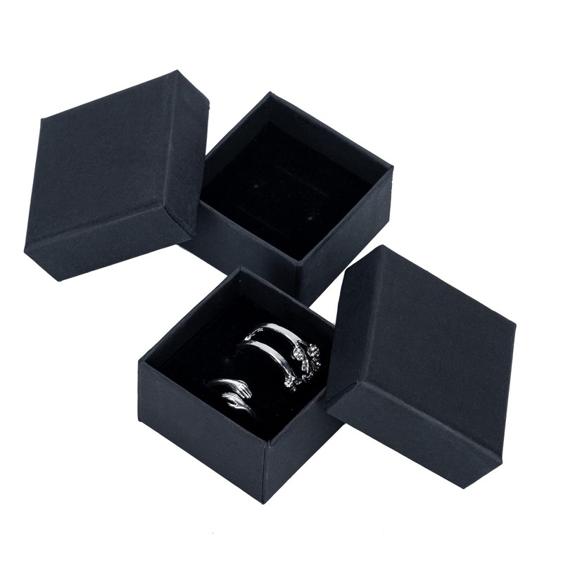 2Pcs Earrings and Rings Gift Box, 5x5x3cm Black Small Jewellery Boxes, Jewellery Case Organizer with Lid for Christmas Wedding Valentine's Day Birthday Presents Storage (5x5x3cm)
