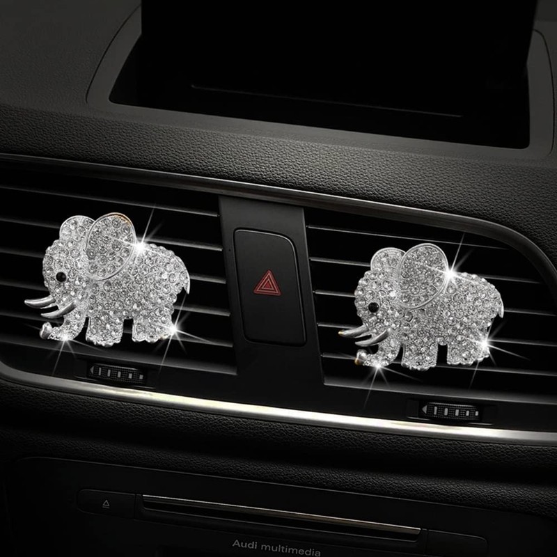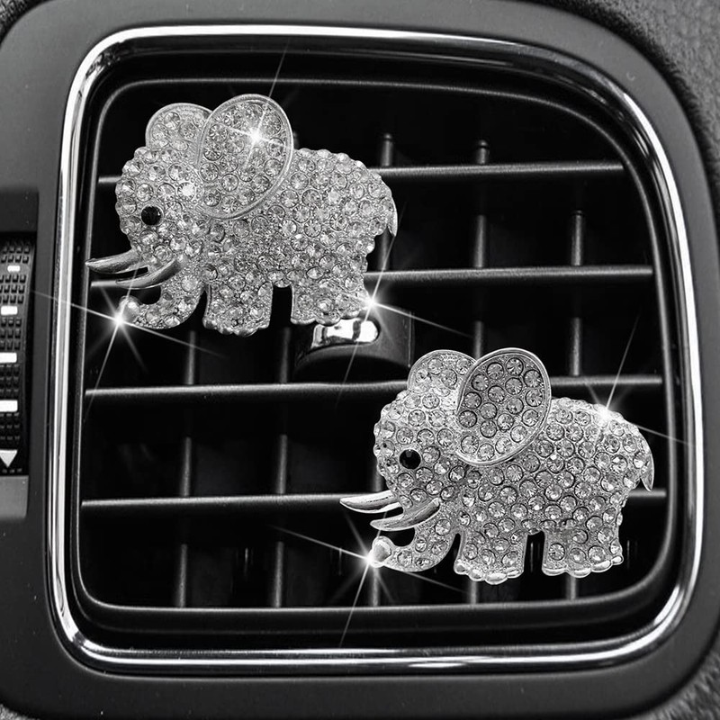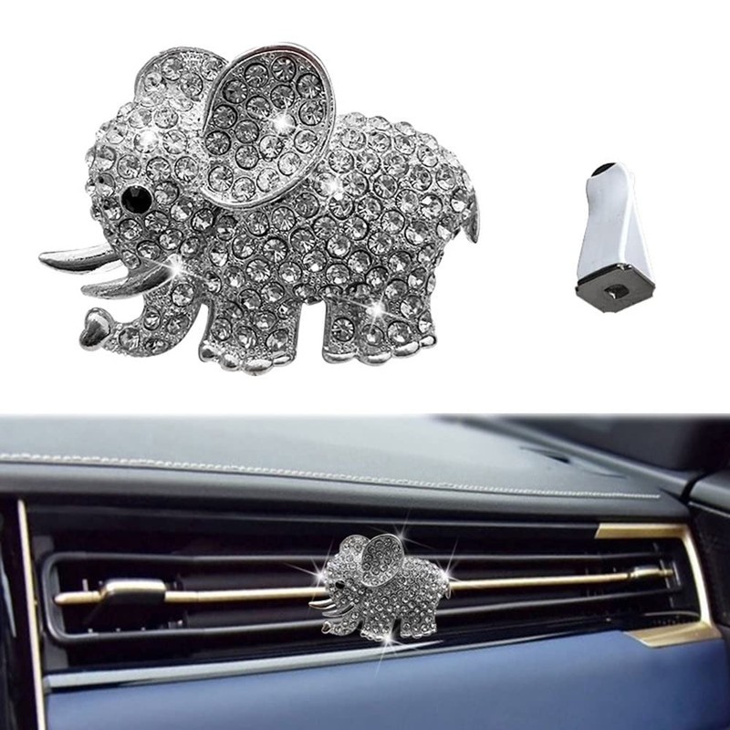 3. Eye Catching: A shiny air vent clip features an elephant-shaped design encrusted with rhinestones, adding attraction to your personal or workspace while you enjoy relaxation.