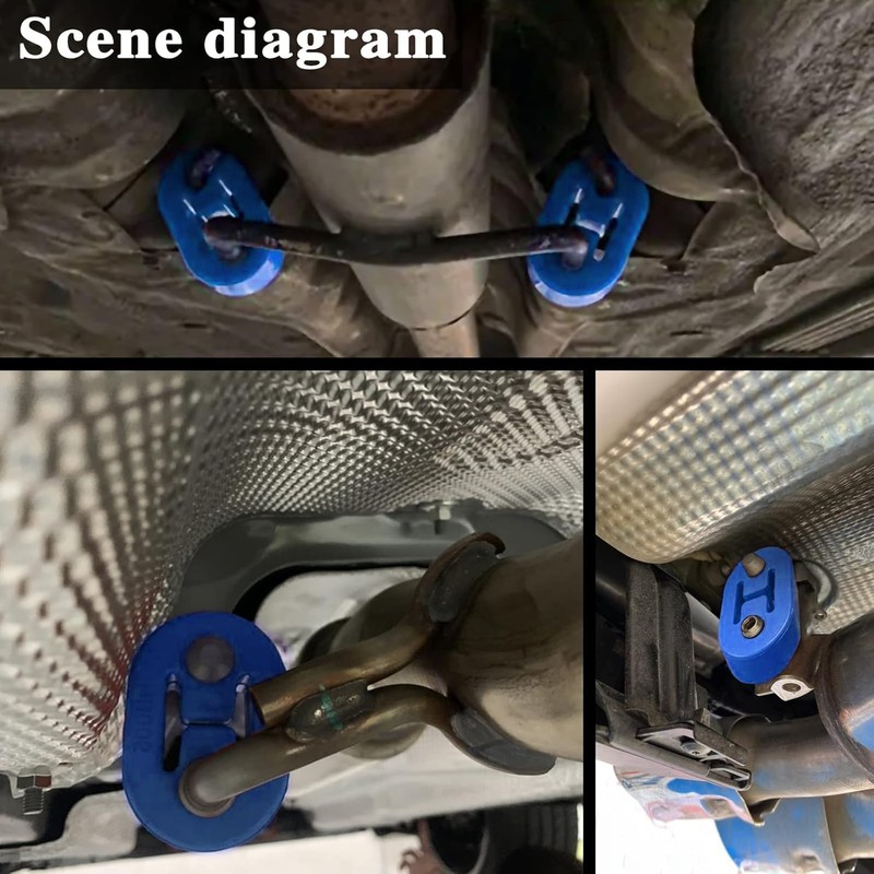 - Function: This exhaust rubber hanger is essential to suspend the exhaust pipe from the chassis, while absorbing vibrations so the exhaust system is quiet and does not rattle. High density rubber muffler hanger helps fix the exhaust pipe position to reduce vibration and noise. Prevent exhaust pipe from scraping along the ground.