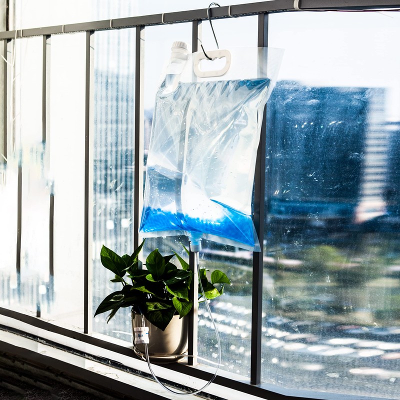 - SELF AUTOMATIC WATERING SYSTEM. - Plant watering set includes 6500ML water drip bag, you can generally water continuously and automatically up to 50 days, 6500ml large capacity design allow you save mind and effort to keep your plants properly maintained and growing, Especially when you enjoy vacation or during business trip away. Automatic drip irrigation device will help you more, you never need to worry about forgetting to water plants.