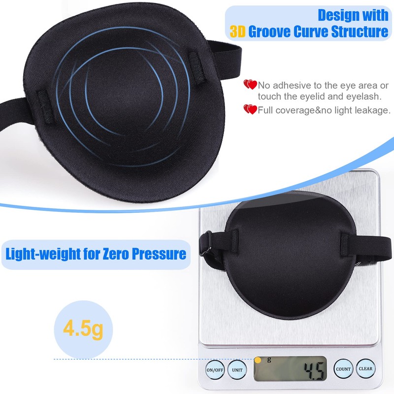 - Full Coverage&Perfect Fit - 3D groove curve design can block almost all the lights for eye area that fully covers one eye, soft and lightweght fabric fits for sensitive skin or used under glasses.