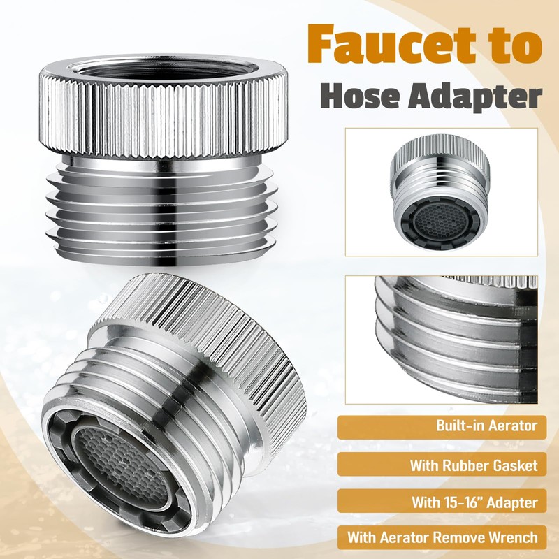 - [Hose Adapter for Sink Faucet] Faucet Adapter is only compatible with sink faucets that feature removable aerators. It boasts 55/64"-27 female threads and attaches to faucets with 55/64"-27 male threads. Additionally, it comes with a 55/64"-27 X 15/16"-27 male thread adapter, suitable for faucets with 15/16"-27 female threads.