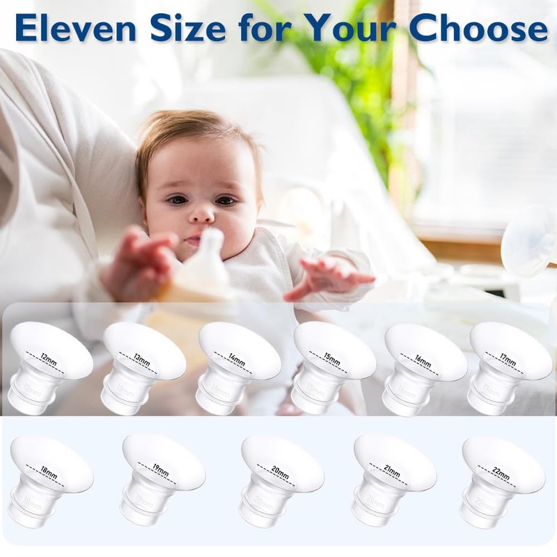 - 【Work the Same as the Original】:Our flange inserts have five size(12/13/14/15/16/17/18/19/20/21/22mm) to choose,you can pick a more correctly size fit your using, easy to transfer the 24mm to correct nipple size, ensuing a snug and comfortable fit is the same as original.It is a good helper for those moms who are anxious by the little milk output, which can get more milk output from pumping without pain.