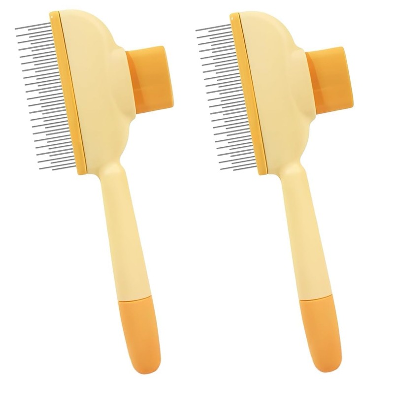2Pcs Flea Comb for Dogs Cats, Self-Cleaning Hair Combs Grooming for Short haired or Long Dogs Cat, Deshedding Brush, Removing Loose Fur and Massage, Small, Medium & Large Pets(yellow)