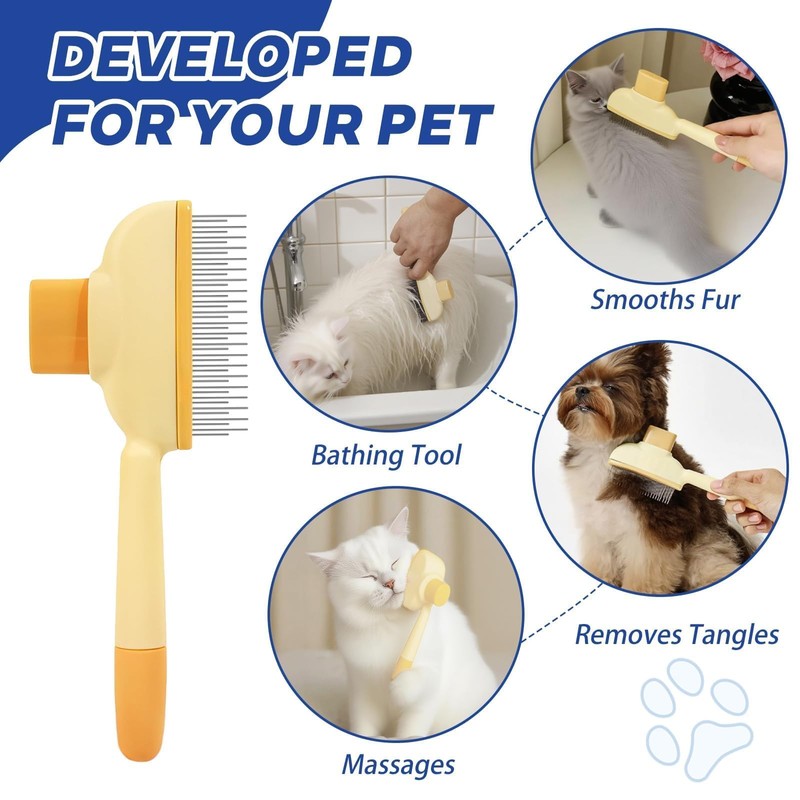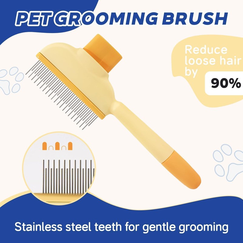 - One-Button Self-Cleaning:This flea comb for cats has a unique one-button cleaning button located on the top of the cat brush. When you need to clean the animal hair on the comb, press the button and the hair on flea comb for dogs will fall off easily, dog flea comb greatly improving the efficiency of hair removal. You dont need to waste time cleaning the hair on the brush, flea comb for kittens improves your sense of happiness