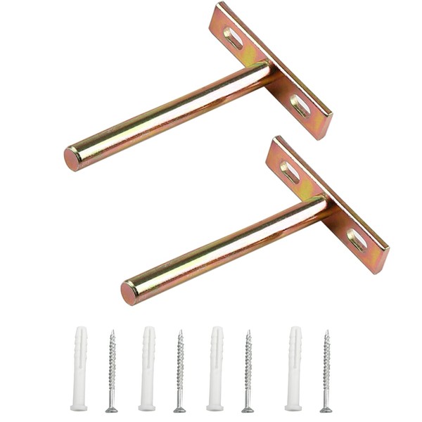 - Size Guide:You will receive 2PCS 4inch Floating Shelf Brackets with 4pcs Mounting Screw(5*60mm),Floating Shelf Brackets total length 104mm,pole length 100mm,plate size 70*15mm,two small holes width 6mm. Can be used with complimentary mounting screws.