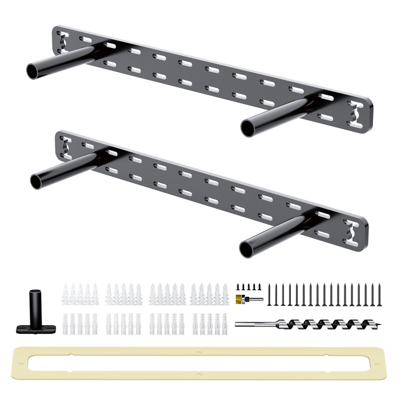 - 【What You Get】 2pcs floating shelf brackets, screws, anchors ,route bit, drilling jig, auger bit, and routing jig.