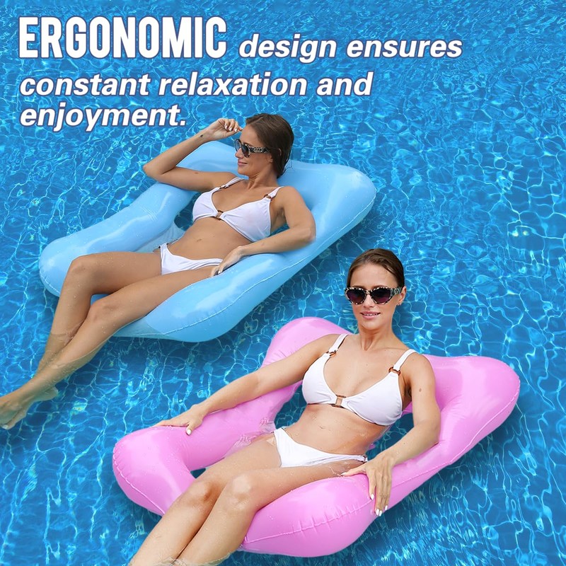 2PCS Floating Water Floating Field Style Style Pure Color Children and Adults Rest Sunlight Bath Pneumatic seat Lounge Chair Water Party Toys (Pink+Light Blue)